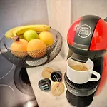 В допълнение към възможностите за самостоятелно хранене, като напълно оборудвана кухня, имотът предлага на гостите трапезария, където могат да се насладят на храната си.